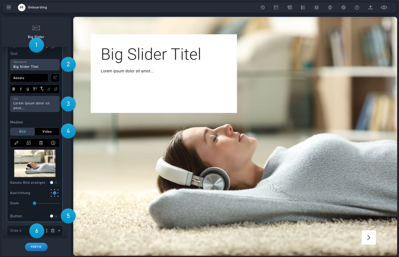 Der Big Slider eignet sich perfekt, um den Einstieg in ein WBT anschaulich zu gestalten.
