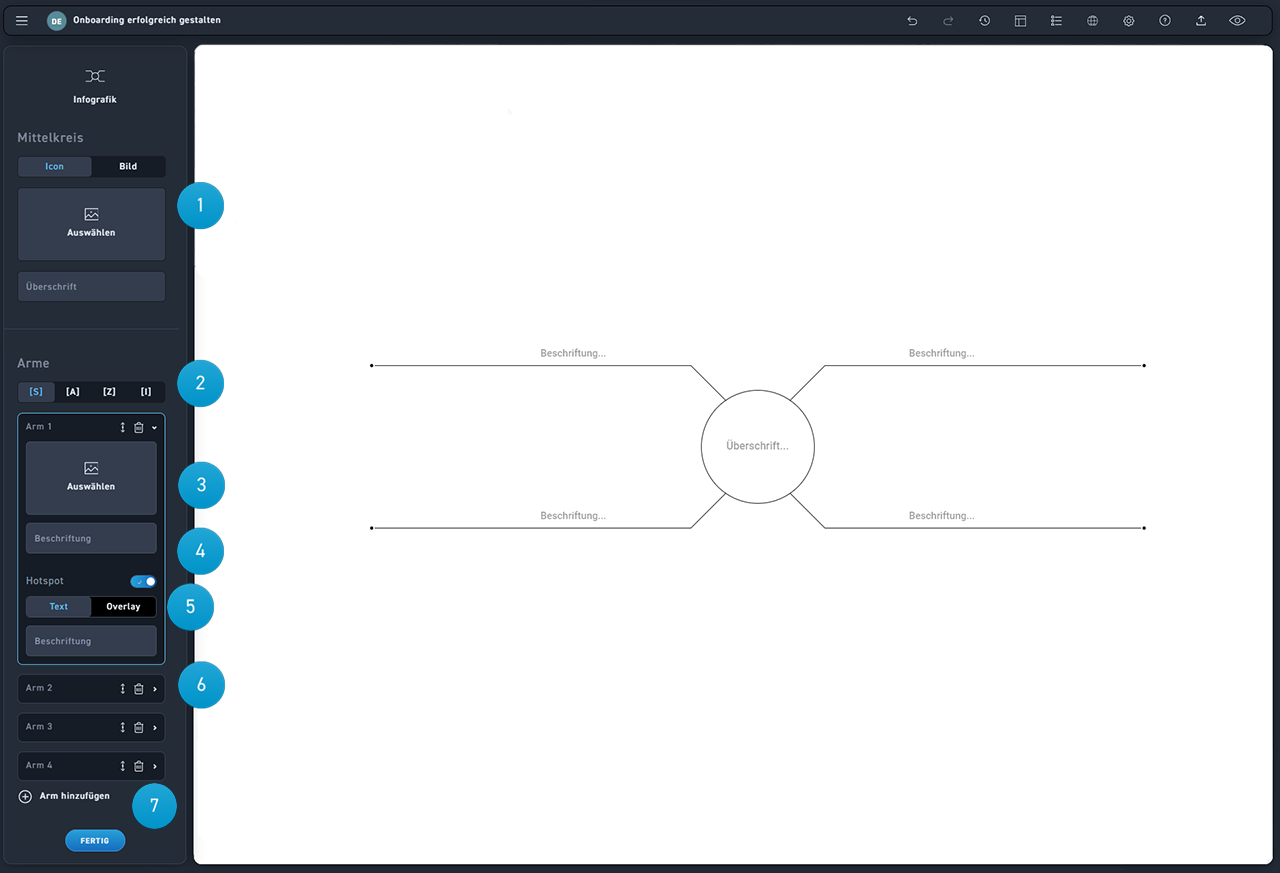 Aktiviere Hotspots für die Infografik und wähle aus, ob es ein Text oder ein Overlay sein soll.