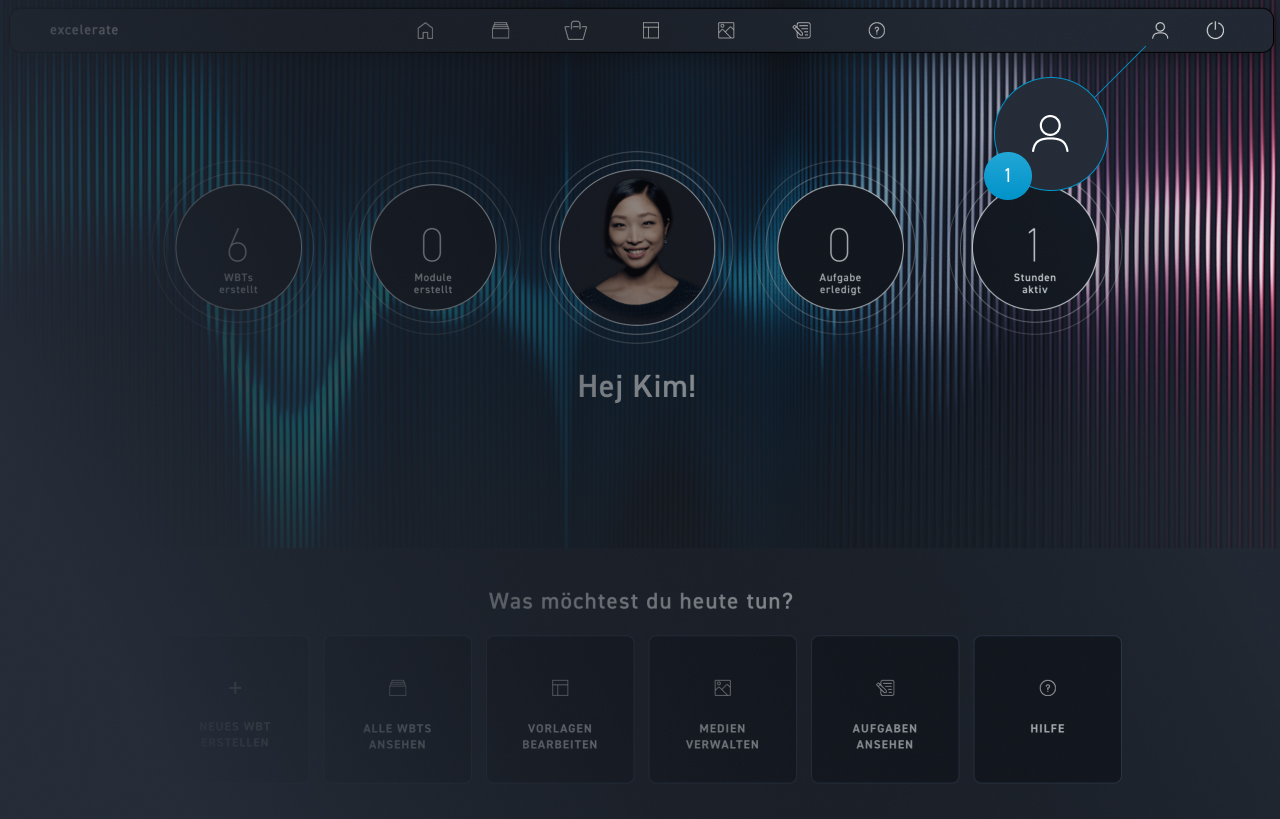 Vom Dashboard aus gelangst du mit einem Klick oben rechts auf die Figur auf dein persönliches Profil.