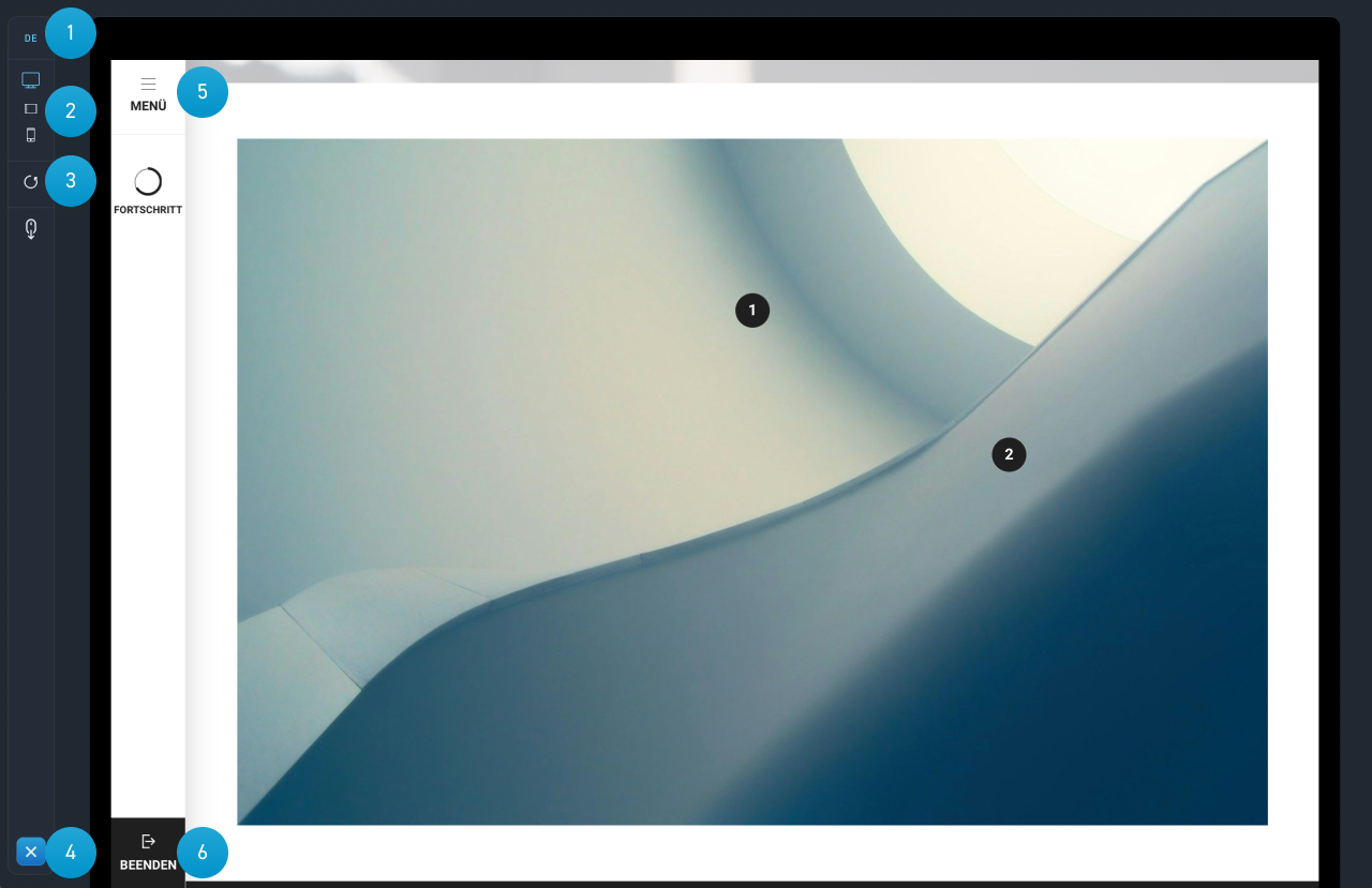 Klicke auf das Augen Symbol, um die Vorschau zu öffnen. Dort kannst du Quizze ausprobieren und das WBT aus Sicht des Lernenden testen.